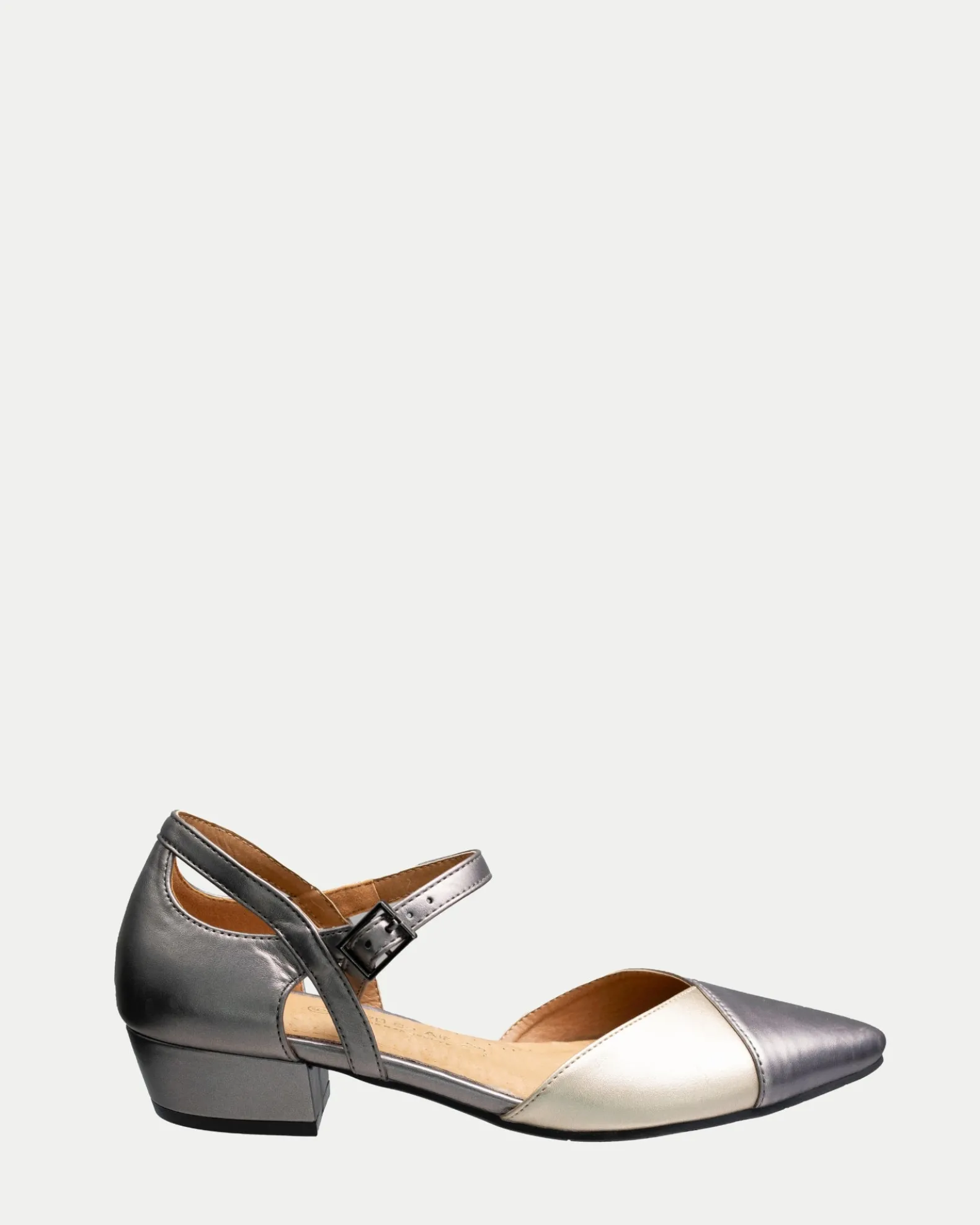 - -Ankle buckle strap and textured toe add visual interest